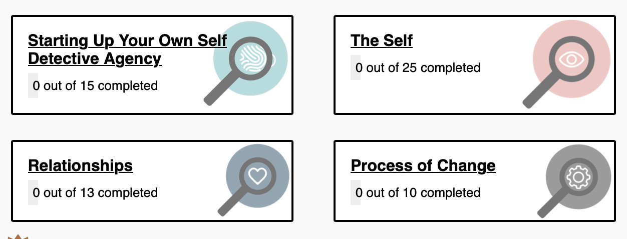 Self Detective is a safe and nurturing environment in which to learn. However, if you are in a bad mood, if you are giving yourself a hard time, if you are having a wobbly moment, it might be best to take a break and do some self-care stuff instead.